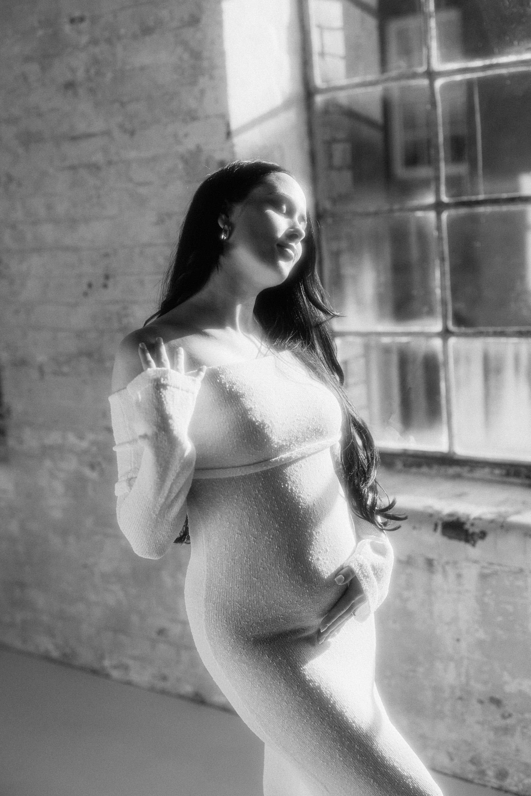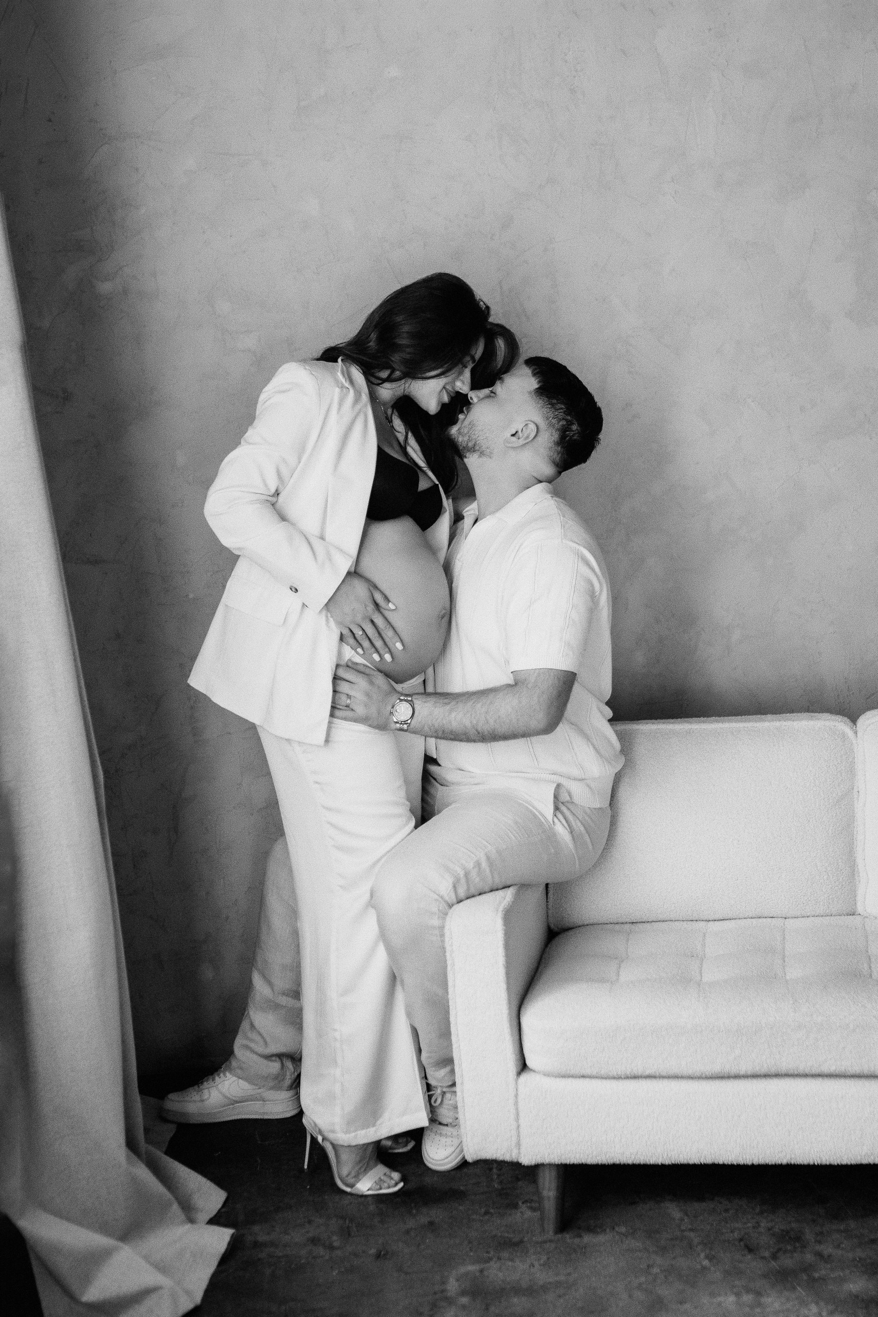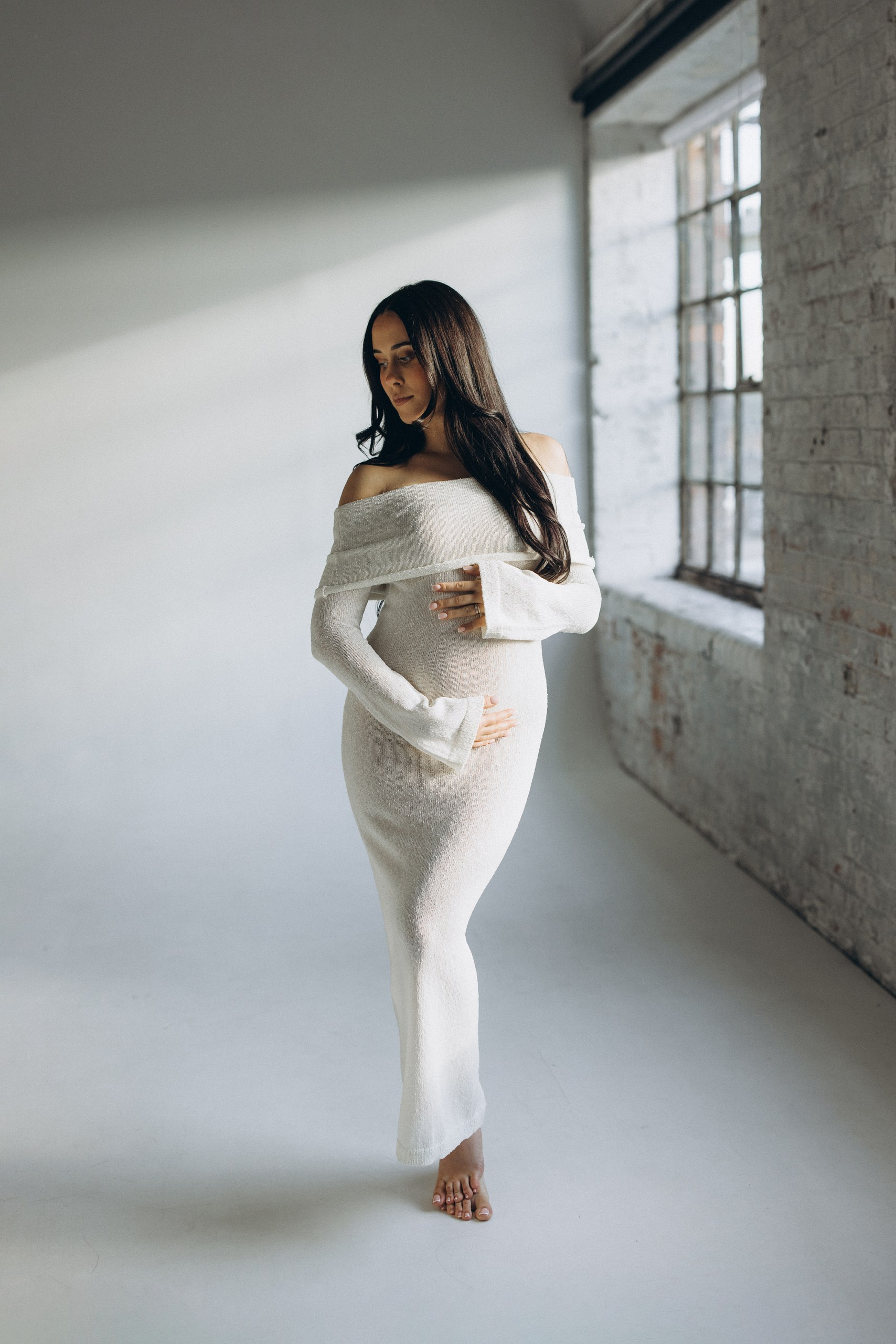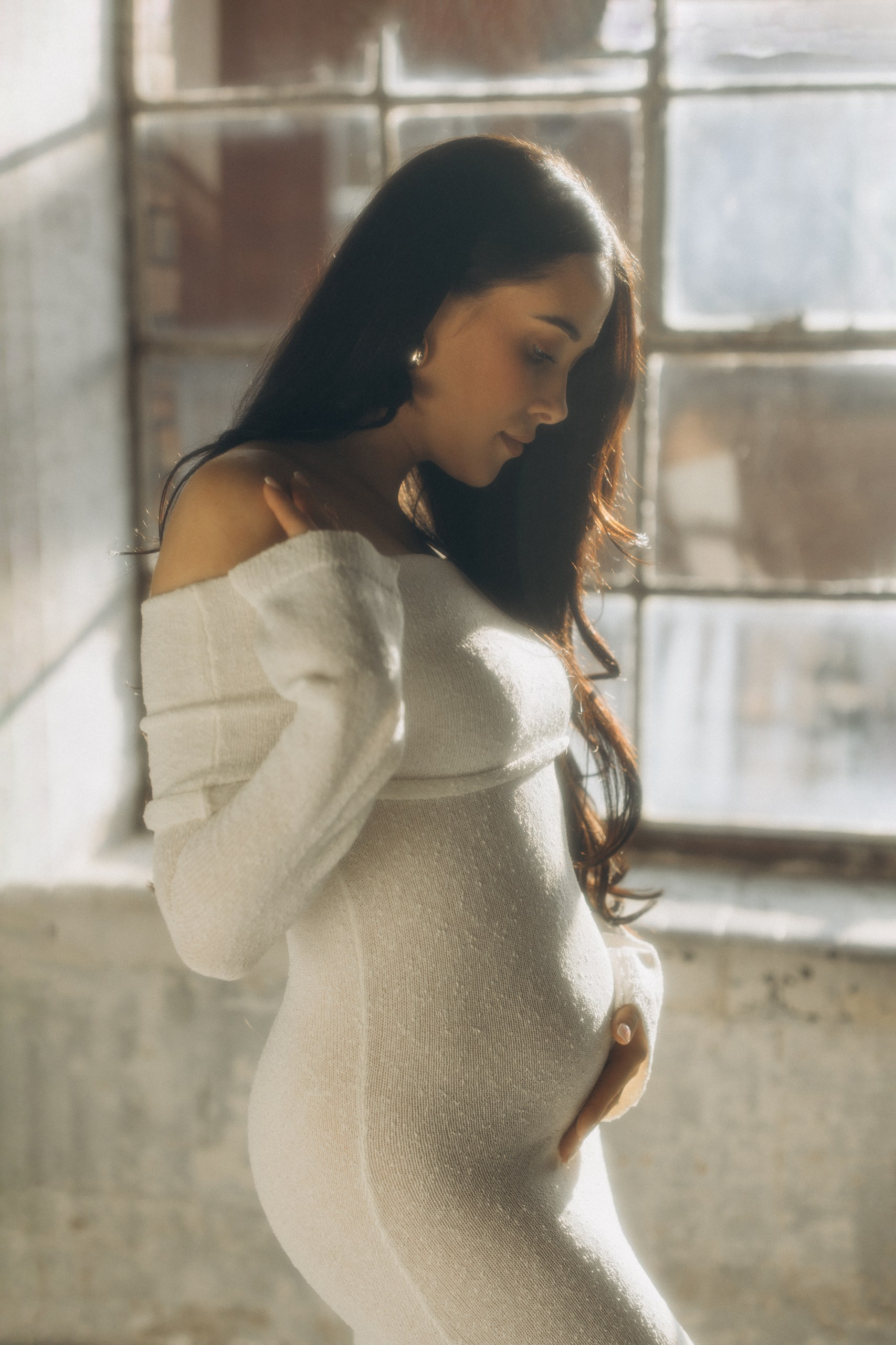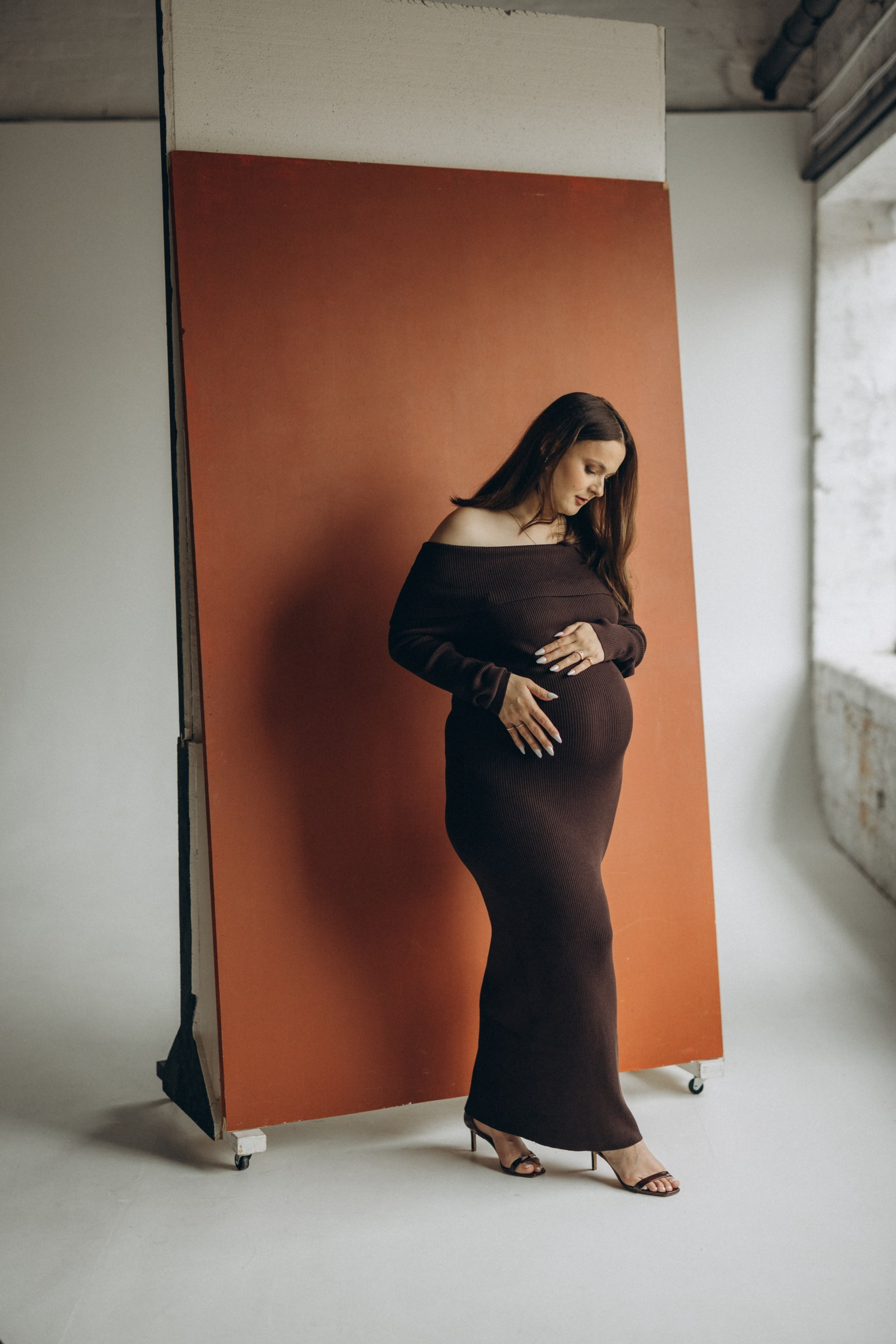 An expecting woman is shining. This time is one of the most beautiful in her life. She’s like a blooming flower. The maternity photoshoot is a must-have.